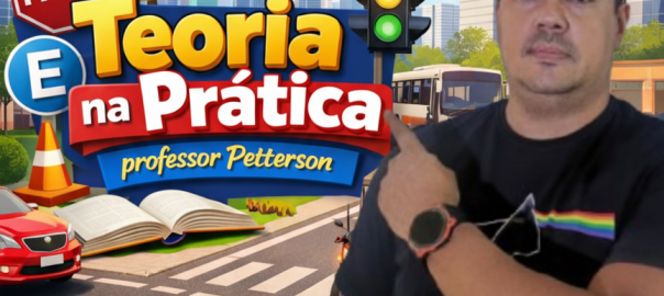 “Teoria e na Prática” é um curso teórico de educação no trânsito desenvolvido pelo professor Petterson, especialista em legislação de trânsito com mais de duas décadas de experiência. O projeto combina conteúdos fundamentados nas resoluções vigentes de 2025 com uma abordagem didática e acessível, preparando candidatos à habilitação não apenas para aprovação na prova teórica, mas para uma condução segura e responsável.O visual do curso reforça essa proposta: elementos urbanos reais (semáforo, placas de trânsito, veículos), um livro aberto representando o aprendizado estruturado, e a presença do instrutor criando proximidade e confiança para retirar e sanar suas dúvidas no conteúdo. Tudo isso comunica que o aluno aprenderá legislação de forma clara, prática e aplicável ao dia a dia nas ruas.